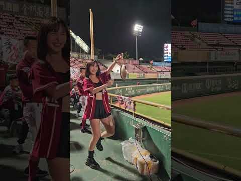 局間大家都會呼喚朱哥丟球 當我認真拍完禹菡認真搖旗後 老公就跟我說撿到朱哥的球