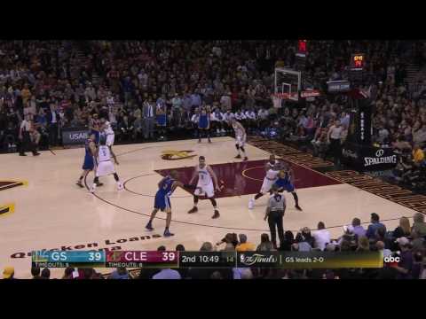 Curry餵球到禁區後,得到來自Iguodala的掩護,Curry輕易得到空擋。