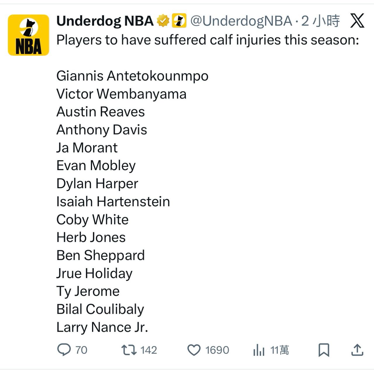 : 開季至今大概僅走約1/3-1/4賽程,就已經有一堆球星