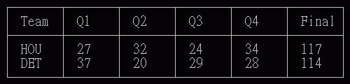 [BOX ] Rockets 117:114 Pistons 數據