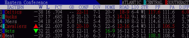 --------------------------------------- 2Wizards ▼24 29 .453 13.5 13-17 5-3 12-12 12-17 6-4 L3 112. …