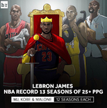 [花邊] 美媒發圖祝詹姆斯 13個賽季場均得分25+