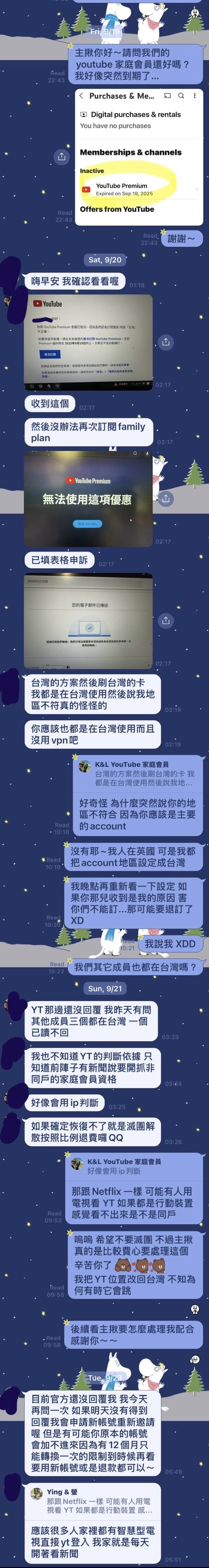 theweekend版友收了1年的youtube家庭團費用,履約了4個多月後出了問題不能看,