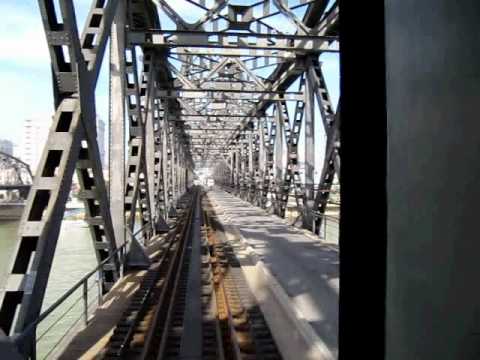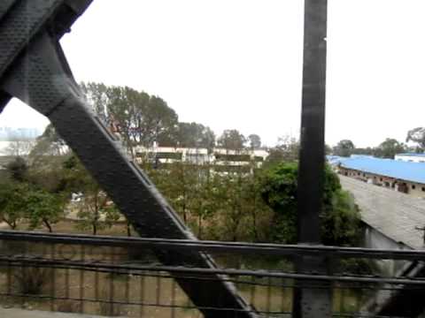橋面上分成左側通火車右側通汽車,有時候也可以看到人用走的