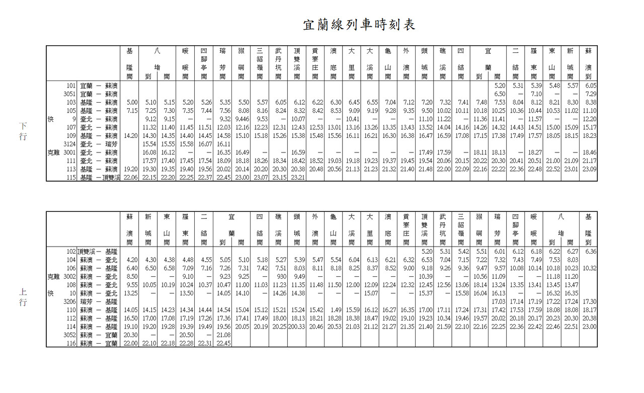 [改點] 41.3.15改點西線、宜蘭線時刻表