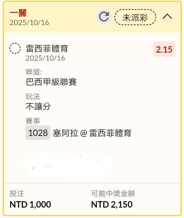 ※ 文章網址: https://www.ptt.cc/bbs/SportLottery/M.1760563127.A.6B5.html