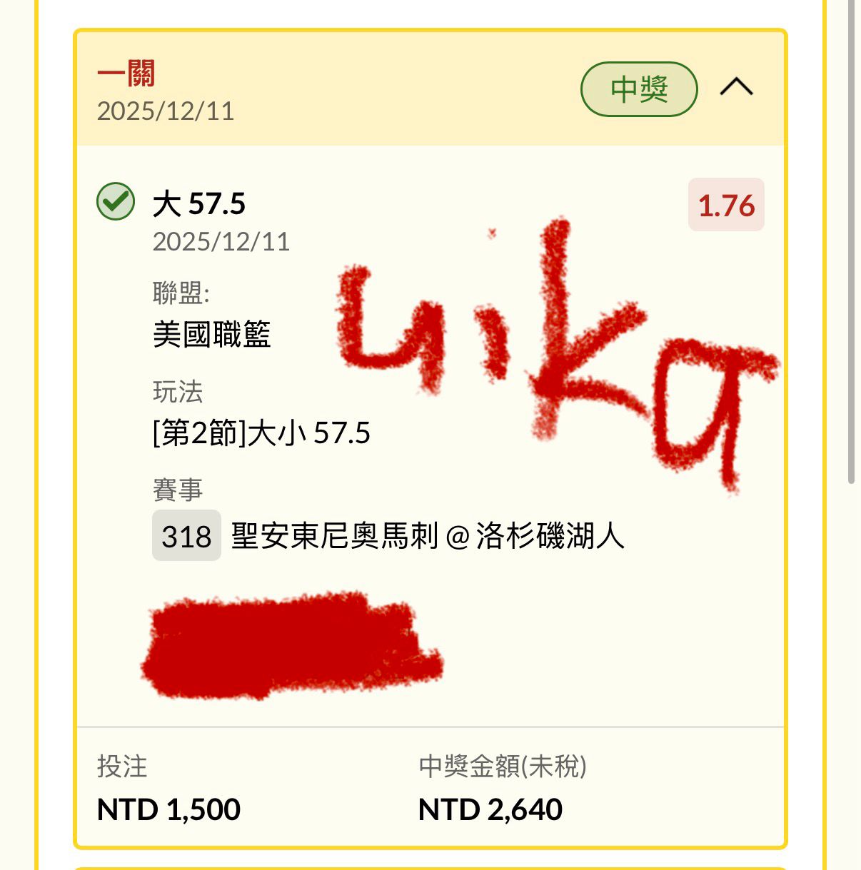 ※ 文章網址: https://www.ptt.cc/bbs/SportLottery/M.1765423070.A.663.html
