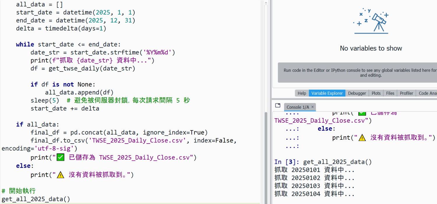 我想要將股價每日的收盤價,數據大量抓出來,然後橫坐標