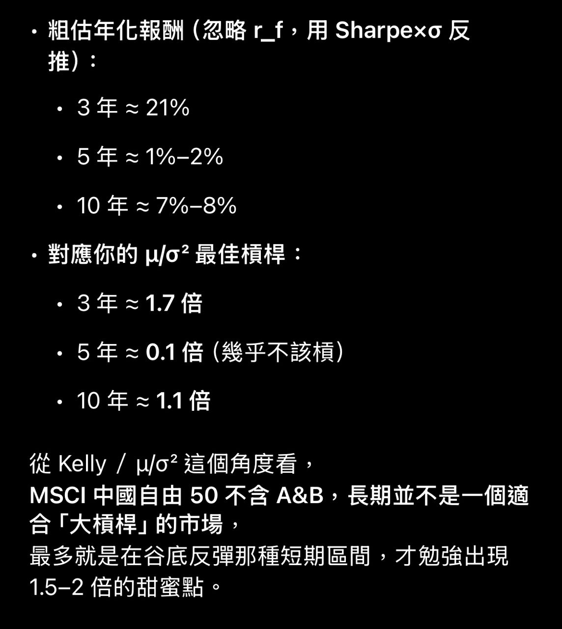 這個值大概是(因為期望收益是估算,只能做參考)放大複利能壓過波動耗損的槓桿倍率