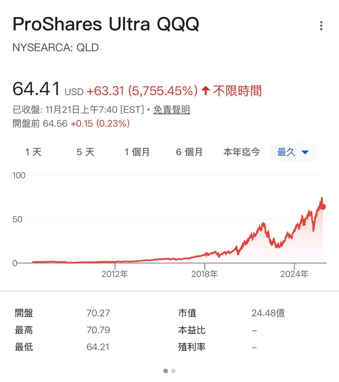 推 Gallardo: 正2不適合常持+1 我波克夏2x 盤整來回10% 1次的損耗 績效就輸正股了50F 11/29 17:25