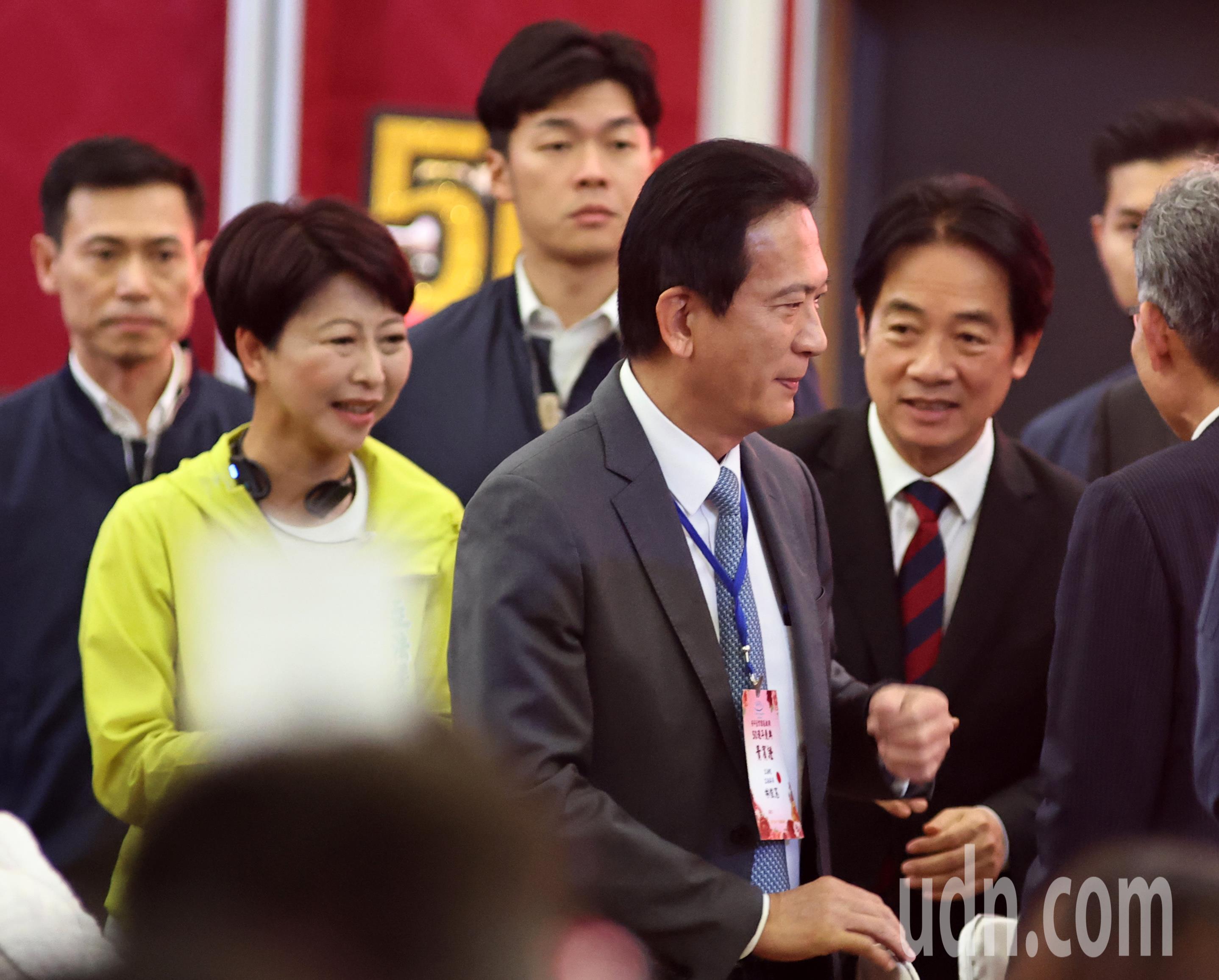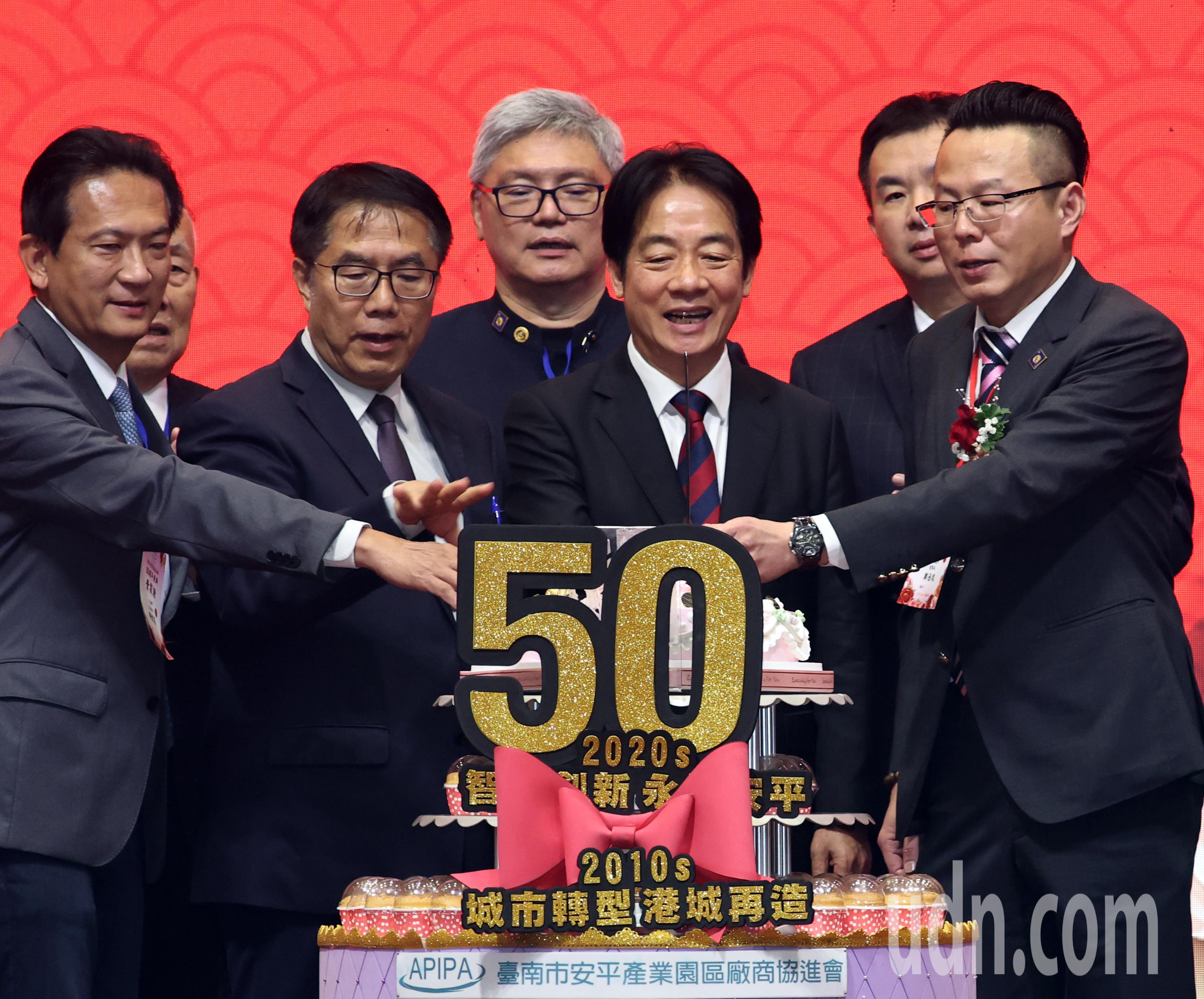 賴清德總統(右)參加安平產業園區啟用五十周年慶祝活動,爭取台南市長提名的立委林
