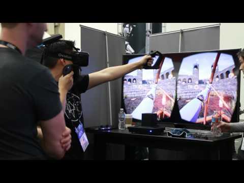 從巴哈姆特 GNN 現場拍攝的影片中,玩家可以看到參觀者遊玩 Sixense 開發的射箭遊戲