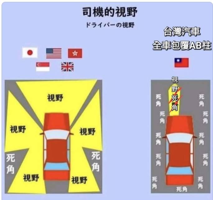 哥開的是老車啦,車上沒有盲點偵測,