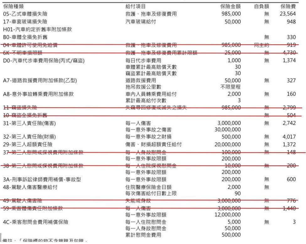 第一次買車業務幫忙承保乙式險,參考了一下大家的乙式險跟心得