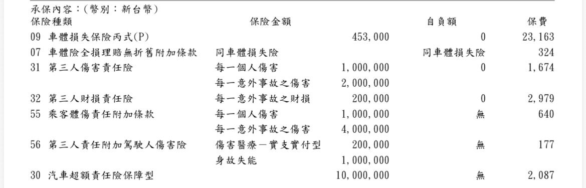 : 我2015車體25萬 保丙含超額1000萬 保費9000