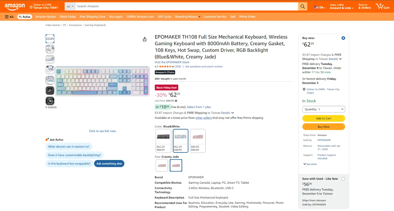 作者 arsonlolita (慈悲的魔王)標題 [心得] 好市多黑五進中國淘寶貨時間 Wed Nov 26 10:56:54 2025