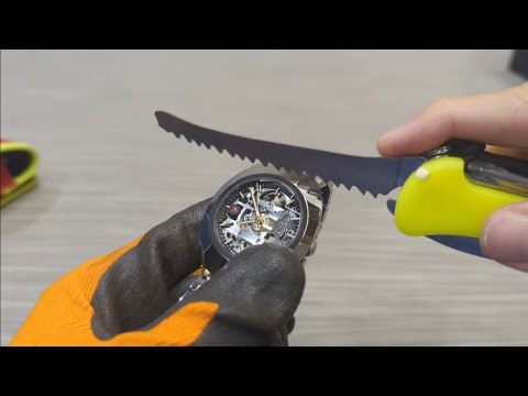 先說結論:這次一共找了8個對手輪流來挑戰雷達錶金屬錶圈的耐刮程度